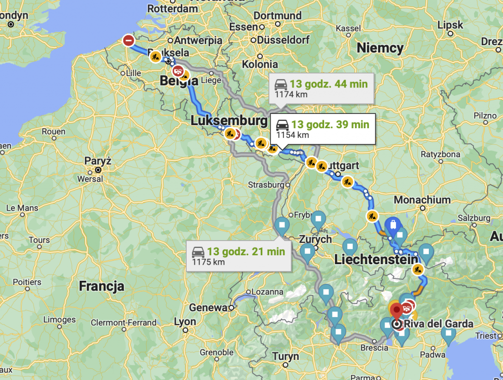 Nasza trasa: 🇧🇪Belgia – 🇳🇱Luksemburg – 🇩🇪Niemcy – 🇦🇹Austria – 🇮🇹Włochy